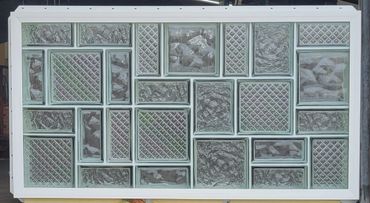 A 1920's stylized retrospective design by using the Deco glass block pattern. Offering natural light transmission with moderate visibility